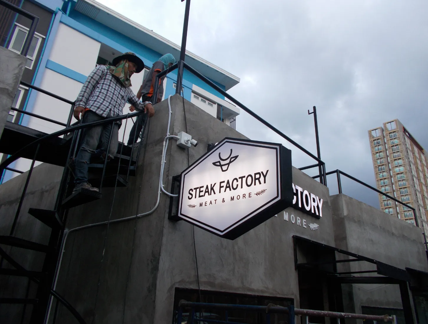 คือป้ายที่ใช้แผ่นโลหะ เช่น เหล็ก, สแตนเลส, อลูมิเนียม แล้วนำมา ตัดหรือลวดลายด้วยเครื่องเลเซอร์ (Laser Cutting) เพื่อความแม่นยำสูง และได้ดีไซน์ที่ละเอียด สวยงาม